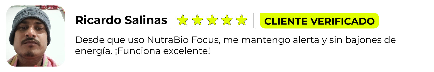 Si eres sensible a la cafeína, consulta con un médico antes de usarlo, ya que NutraBio Focus contiene cafeína natural.